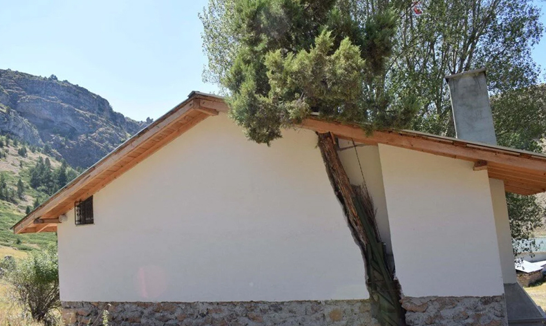 Kabal evi genişletmek isteyince yan taraftaki baba yadigarı 100 yıllık ardıç ağacı, duvarın olduğu noktada kaldı.