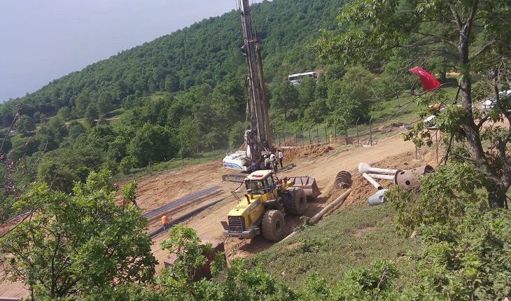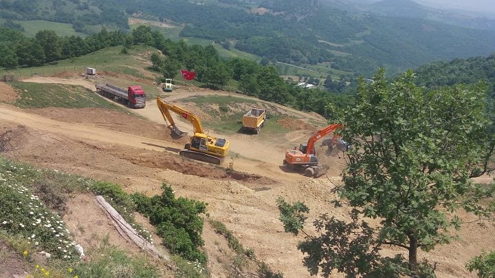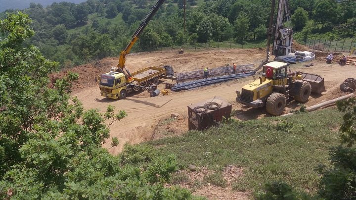 4 günlük yasak boyunca kamyonlarla maden bölgesine malzeme taşıyan işletme, bugün ise temel atmak için gerekli olan kazıkları çakmaya başladı.