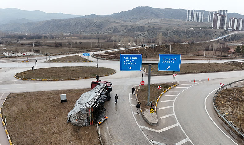 Kaza, Kırıkkale-Ankara D-200 kara yolu üzerindeki Kalecik Kavşağı’nda meydana geldi. Edinilen bilgiye göre, S.R. idaresindeki 06 RY 516 plakalı Mercedes marka tır, sürücünün kontrolü kaybetmesi sonucu yan yattı. Sürücü kazayı yara almadan atlattı. İhbar üzerine olay yerine trafik ekipleri sevk edildi. Ekipler, kaza alanında güvenlik önlemleri alırken, kavşak geçici olarak trafiğe kapatıldı. Kazayla ilgili inceleme başlatıldı.
