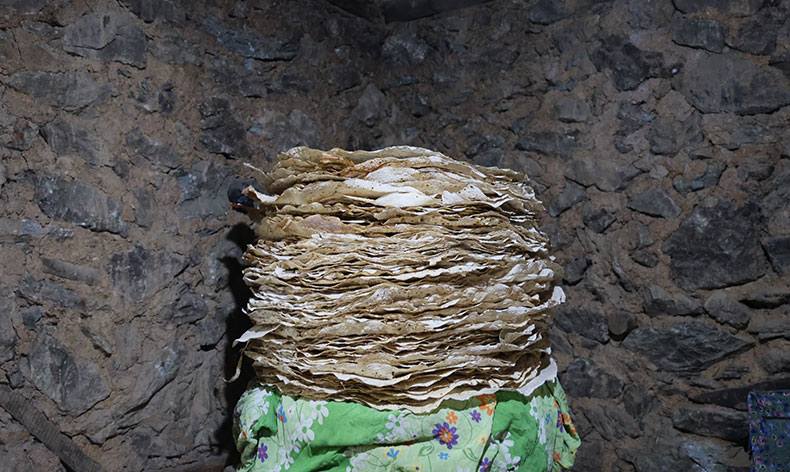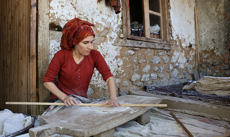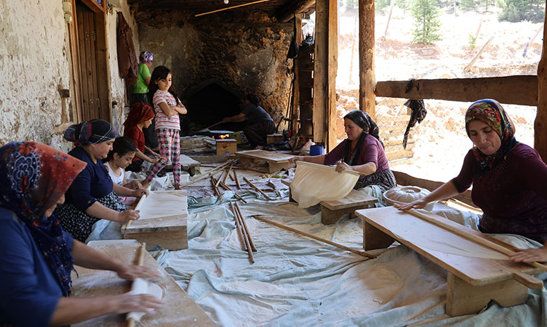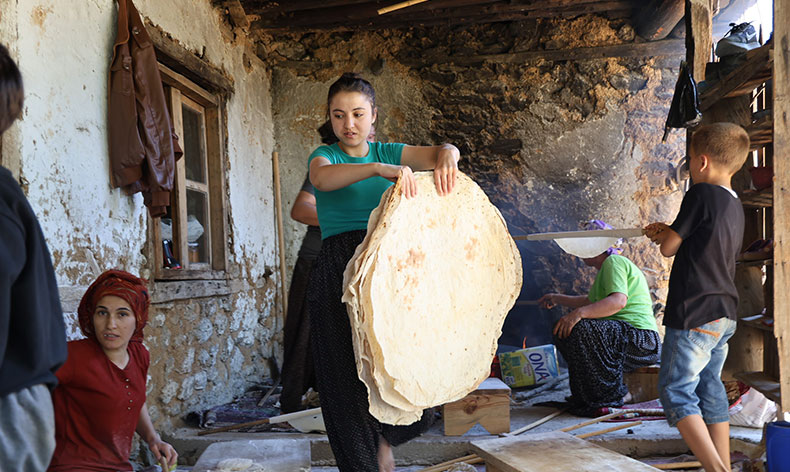 Elif Kindan her yıl yayla göçü öncesi bir araya gelerek kışlık ekmeklerini hazırladıklarını kaydederek, “Sabah namazında ekmek mesaisi başlıyor. Akşama kadar süren bir mesai oluyor. Köyde kadınlarımız çocuklarımızı okutmak için şehir merkezlerine gitti. Yazın yaylada oluyorlar. Kışlık göç öncesi bizlerde imece usulü yufka ekmeklerimizi hazırlıyoruz” dedi.