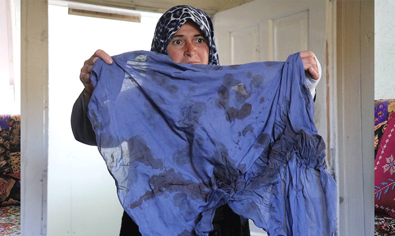 Fatma Kılınçaslan, kavga esnasında kanlar içerisinde kalan başörtüsünü göstererek duygulandı.