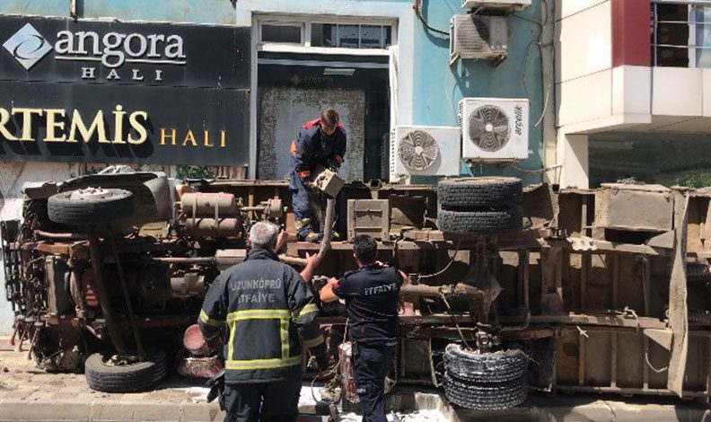 Şans eseri kaldırımda kimsenin olmaması ise büyük bir facianın önüne geçildi. Kömür yüklü kamyonun kömürleri gelen başka bir kamyona taşınmasının ardından bölgeye gelen vinç ile yan yatan kamyon kaldırıldı.
