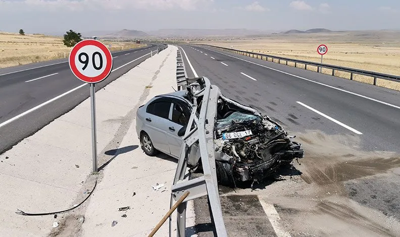 Ankara’dan görev yaptığı Şırnak’a giden İsmet K. (30) idaresindeki otomobil sürücünün direksiyon hakimiyetini kaybetmesi sonucu kontrolden çıkarak refüjdeki demir bariyerlere saplandı. Kaza sonucu otomobil hurdaya dönerken, sürücü ve araçta yolcu olarak bulunan eşi İrem K. (28) ve kızı K.K. (4) yaralandı.