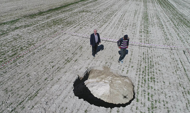 Yağışların azlığı ve kuraklık Türkiye’yi etkilemeye devam ediyor. Tarımın başkenti olarak bilinen Konya Ovasında ise başta Karapınar ilçesi ve çevre ilçeler ile illerde obrukların oluşumu her geçen gün artarken, yapılan son araştırmalarda yaklaşık 3 bin obruk kayıtlara geçti. Konya Teknik Üniversitesi Obruk Uygulama ve Araştırma Merkezi Müdürü Prof. Dr. Fetullah Arık, “Bölgede obruk etkinliği ve sayıca da artış devam ediyor. Bölgedeki obruklara baktığımız zaman, genellikle örtü çökmesi şeklinde belirleyebiliriz. Yani ana kaya üzerindeki günceller üzerinde meydana gelen obruklar şeklinde. Ortak özellikleri tarımsal alanlarda meydana gelmiş olması, yerleşim alanlarına da yakın olarak meydana gelmesi. Bu durumda baktığımız zaman AFAD’ın Afet Riski Sistem içerisinde kayıtlı 605 obruğa ilave bu yıl için bir 10 ile 15 obruk daha eklediğini söyleyebiliriz. Ancak bölgede sığ derinlikli çökme yapılar var. Yine son oluşan obruklardan bir tanesi Hotamış bölgesinde oldukça sığ bir obruk ama geniş seviye oldu. Bu tarz obrukları dahil ettiğimiz zaman sayıların 3 binleri bulduğunu söyleyebiliriz. Ancak sayının çok fazla bir anlamı yok. Bölge içerisinde hem kuraklık devam ediyor, hem de yer altı suyu kullanımı giderek artıyor. Dolayısıyla obruk oluşumlarının hızının artarak devam edeceğini öngörüyoruz” dedi.