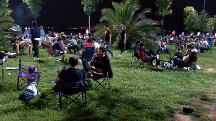 Fakat kurallara uyulmadı. Corona virüsü salgınına aldırmadan müzik eşliğinde dans eden gençler, sosyal mesafe kuralını hiçe saydı, maske takmadı. Bazı gençler, sahile masa kurarak çeşitli oyunlar oynadı.