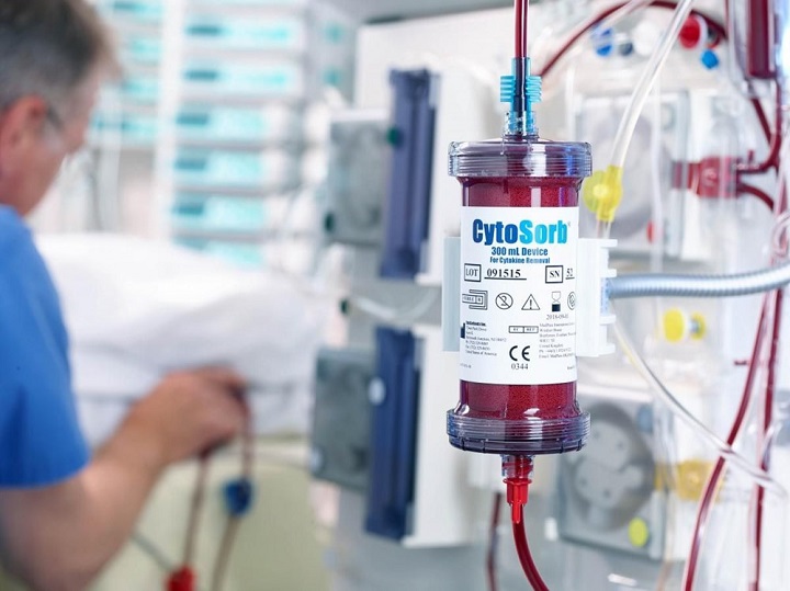 ABD’de üretilen CytoSorb adlı cihaz sünger gibi çalışan boncuklarla dolu bir filtreyle hastaların kanını saflaştırarak sitokin adı verilen potansiyel olarak toksik bileşikleri ortadan kaldırıyor. Boncuklardaki delikler sitokinleri yakalıyor, ancak antikorlar gibi daha küçük, faydalı parçacıkları filtelemiyor.