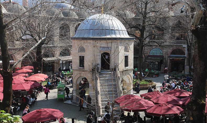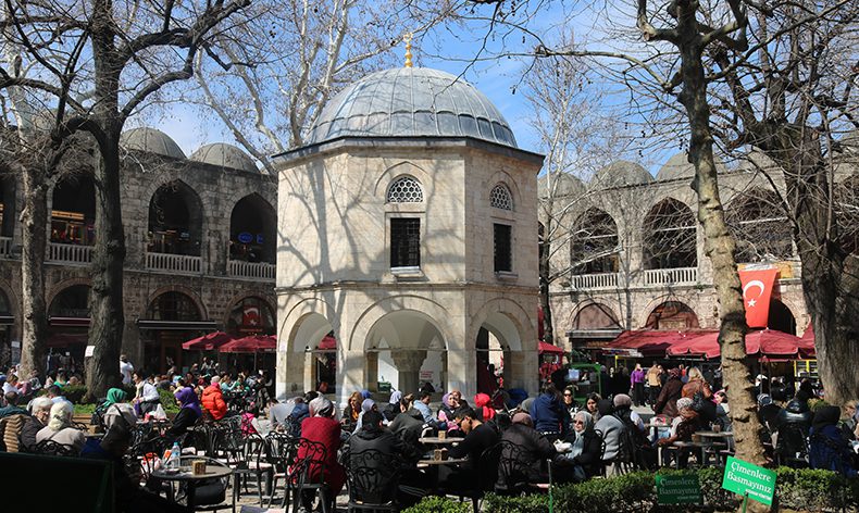 Bursa’nın tarihi hanlar bölgesinde bulunan Koza Han içerisindeki mescit, ilginç mimarisiyle yılda binlerce yerli ve yabancı turist tarafından ziyaret ediliyor. Sekizgen bir yapıda inşa edilen mescidin altında yer alan şadırvanda abdest alan ziyaretçiler, daha sonra üst katta bulunan mescit içerisinde namaz kılabiliyor. Tarihte önemli bir yere sahip İpekyolu’nun son durağı olan Koza Han’daki bu mescit, rivayetlere göre eski dönemlerde Koza Han’a gelen kervanların avluda bıraktığı develerle aynı seviyede olmaması için yüksekte inşa edildi.