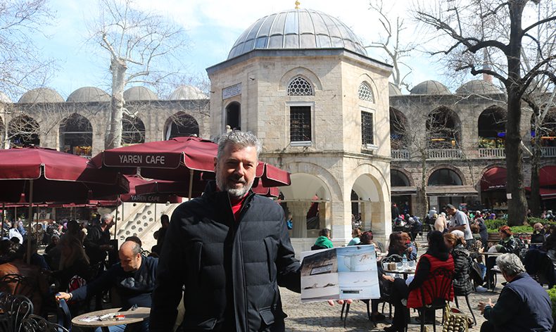 Dünya tarihinin önemli bir parçası olan İpekyolu’nun son durağı Koza Han’a gelen kervanlar develerini avluya bıraktığı için develerle aynı seviyede olmasın diye mescidin yüksek inşa edildiğinin rivayet edildiğini söyleyen Erdinç Şentürk, “Ulu Cami ve Orhan Camii arasında bir yer ve İpekyolu’nun son durağı burası. O dönemde develer, kervanlar geldiğinde han kapıları kapandığı için mescit ihtiyacı duyulmuş burada. O dönemde kervanlar buraya geldiklerinde develerini avluya bırakıyorlarmış. Aynı seviyede olmasın diye 8 sütun üzerinde kaldırıldığı söylenir mescidin. Yani hayvanlarla aynı sevide olmasın, daha yukarıda olsun diye yapıldığı söylenir. Değer verilmiş bu tür ibadethanelere. Güzel yerlere, güzel konumlara yapılmış. Şimdi yapılan alışveriş merkezlerinde, hastanelerde mescitler en diplerde, en köşelerde. Dolayısıyla bu tür yapıları yukarılarda el üstünde tutmamız lazım ki bizler de yükselelim” dedi.