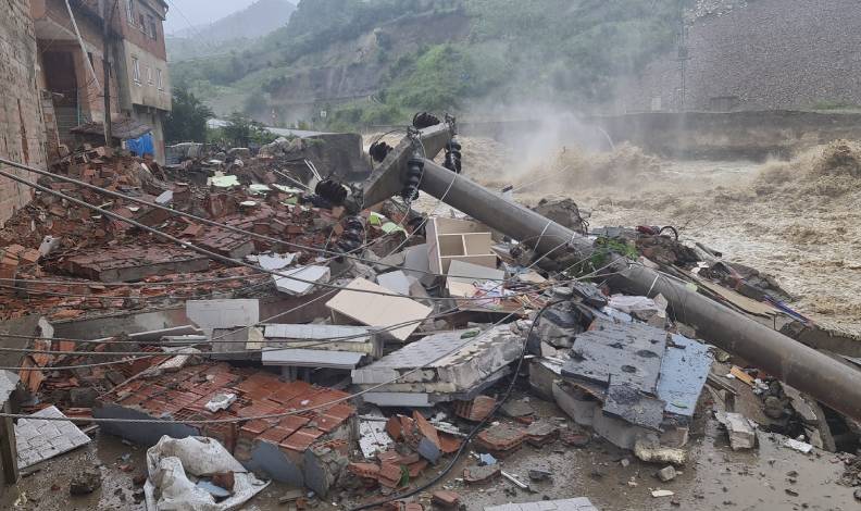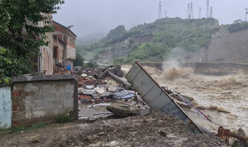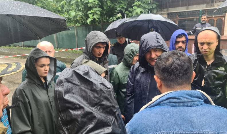Yağmur yağışlarının devam ettiği bölgeye gelen İçişleri Bakanı Süleyman Soylu evin yıkıldığı alanda incelemelerde bulundu.