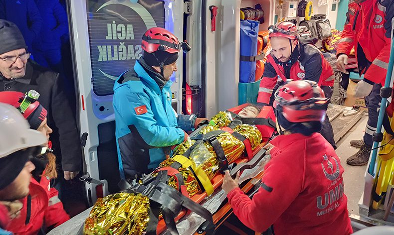 Betül sağlık ekipleri tarafından yapılan ilk müdahalesinin ardından ambulansla hastaneye kaldırıldı. Betül’ün kardeşleri ve annesi ise hala göçük altında bulunuyor.