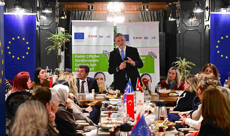 Avrupa Birliği tarafından finanse edilen ve Bursa Ticaret ve Sanayi Odası (BTSO) çatısı altında faaliyet gösteren Bursa AB Bilgi Merkezi, kentin ekonomik ve sosyal kalkınmasında lokomotif rol üstlenen kadın üreticileri ile bu kapsamda anlamlı bir organizasyon gerçekleştirdi. 1889 Bursa Double F Restoranı’nda düzenlenen “Kadın Çiftçiler Sürdürülebilir Gelecek İçin Buluşuyor” etkinliği; geleneksel tarım yöntemlerinden teknolojik fide üretimine, yerel kooperatifleşmeden dünya fuarlarındaki ödüllere uzanan geniş bir başarı yelpazesine ev sahipliği yaptı.