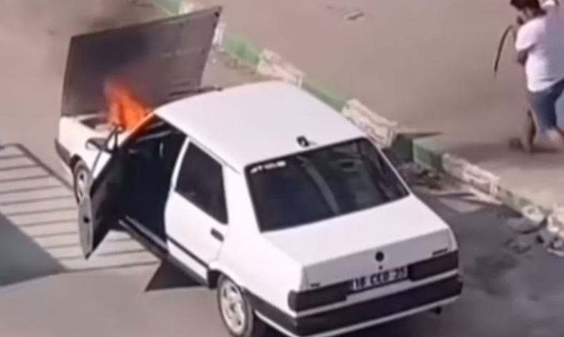 Seyir halindeki otomobil alev aldı