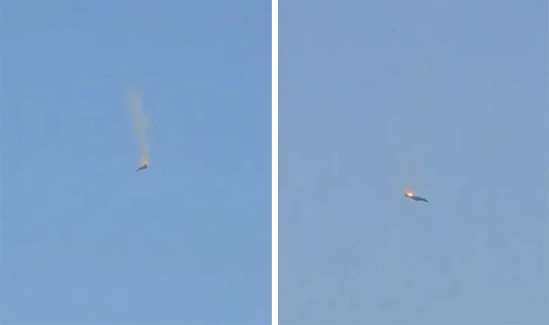 Kuveyt’de bir F-15 savaş uçağı düşürüldü. İlk görüntülere göre uçak kuyruğuna yakın bir noktadan vuruldu. Defalarca havada takla atan jet uçağı ateşler içinde yere çakıldı.