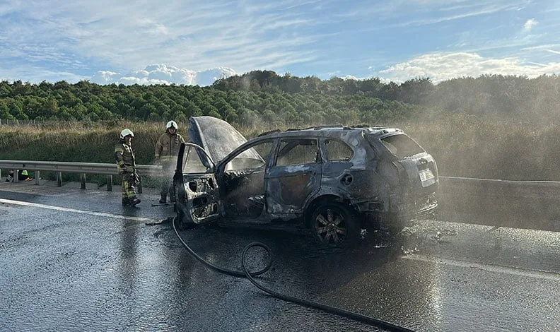 Olay, bugün saat 08.30 sıralarında Kuzey Marmara Otoyolu Odayeri Gişeleri mevkiinde gerçekleşti. İddiaya göre İstanbul Havalimanı istikametinde ilerleyen marka lüks araç, Odayeri Gişelerine yaklaşık 600 metre kala motor kısmından alev almaya başladı. Araç sürücüsü, aracı emniyet şeridine çekerek itfaiye ekiplerine haber verdi. Araçta bulunan 2 kişi kendisini dışarıya atarak itfaiye ekiplerinin olay yerine gelmesini bekledi.