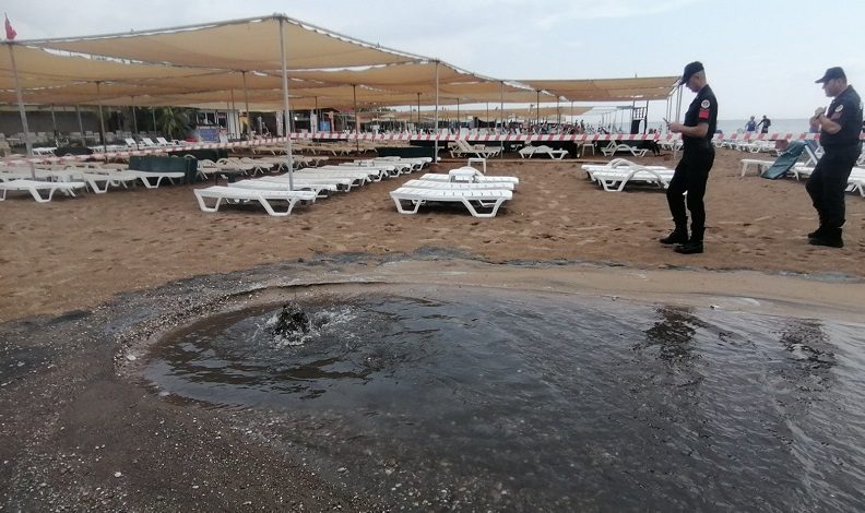 Manavgat’ta sahilde kanalizasyon patladı