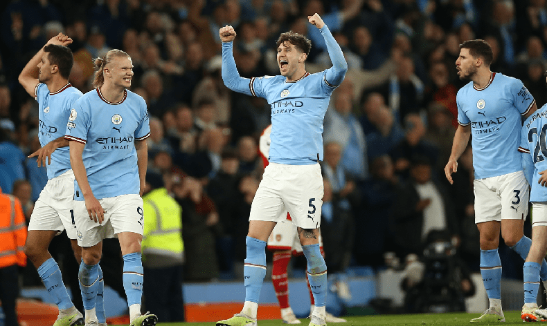İngiltere Premier Lig’in 33. hafta mücadelesinde lider Arsenal, Manchester City ile Etihad Stadyumu’nda karşı karşıya geldi. Ev sahibi, mücadelenin 7. dakikasında Kevin De Bruyne ile 1-0 öne geçti. Manchester City, 45+3. dakikada John Stones ile farkı 2’ye çıkardı soyunma odasına 2-0 önde girdi. Karşılaşmanın 54. dakikasında Kevin De Bruyne ile bir gol daha bulan maviler, skoru 3-0 yaptı. Arsenal, 86. dakikada Rob Holding’in golüyle farkı 2’ye indirse de 90+5. dakikada Erling Haaland skorun belirleyen golü kaydetti. (4-1)