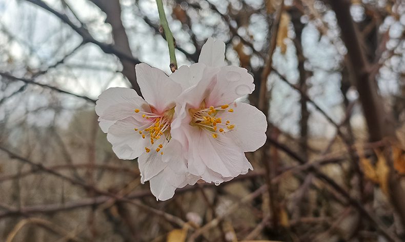 Ülke genelinde uzun bir süre hakim olan kuraklık son günlerde yerini yağışlı havaya bıraktı ancak bitkiler yalancı bahara aldandı. Yalancı bahar nedeniyle Derik’te bademler ve yabani bitkiler çiçek açtı.