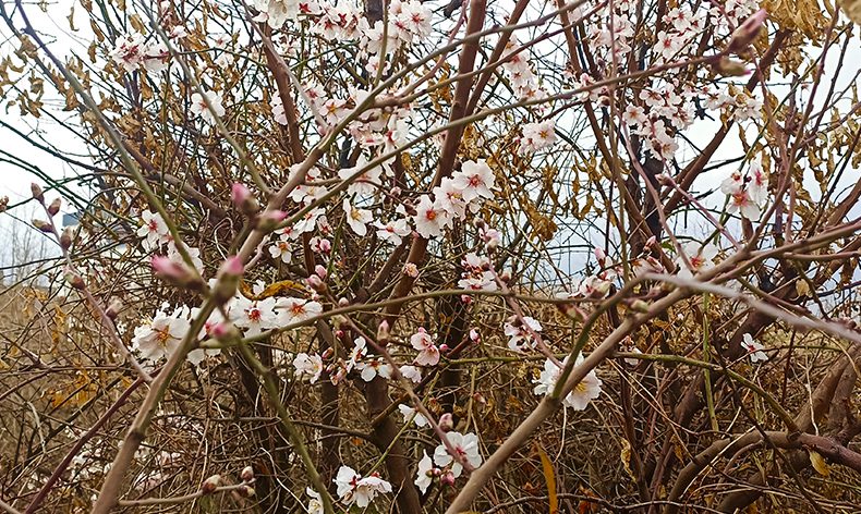 Ülke genelinde uzun bir süre hakim olan kuraklık son günlerde yerini yağışlı havaya bıraktı ancak bitkiler yalancı bahara aldandı. Yalancı bahar nedeniyle Derik’te bademler ve yabani bitkiler çiçek açtı.