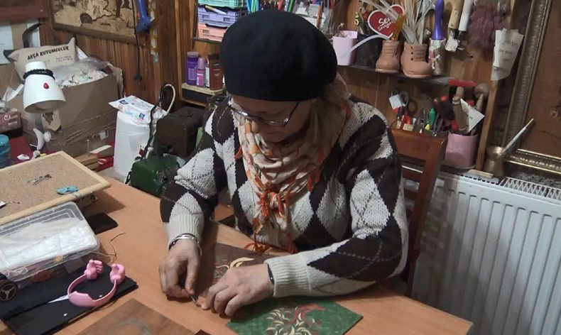 Tarihi milattan önceye dayanan marküteri sanatı, hiçbir katkı maddesi ve boya kullanılmadan ahşap üzerine yapılıyor. Yüzlerce yıllık bu sanatı Türkiye’de çok az kişi icra edebiliyor. 30 yıldır marküteri sanatıyla ilgilenen Kıymet Korkmaz, 13 metrekarelik atölyesinde unutulmaya yüz tutmuş bu sanatı devam ettirmeye çalışıyor. Marküteri sanatçısı eşine yanında asistanlık yaparak başlayan Korkmaz, “Bu sanata eşim sayesinde başladım. Eşim çok önemli bir marküteri sanatçısıydı. Dolayısıyla ben de onun yanında asistanlık yaparak başladım. Ama demek ki benim de ruhumda varmış, çok seviyorum. Burası bile 13 metrekare, benim kocaman dünyam diyorum. Burada çok mutlu oluyorum” şeklinde konuştu.