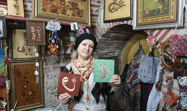 Tarihi milattan önceye dayanan marküteri sanatı, hiçbir katkı maddesi ve boya kullanılmadan ahşap üzerine yapılıyor. Yüzlerce yıllık bu sanatı Türkiye’de çok az kişi icra edebiliyor. 30 yıldır marküteri sanatıyla ilgilenen Kıymet Korkmaz, 13 metrekarelik atölyesinde unutulmaya yüz tutmuş bu sanatı devam ettirmeye çalışıyor. Marküteri sanatçısı eşine yanında asistanlık yaparak başlayan Korkmaz, “Bu sanata eşim sayesinde başladım. Eşim çok önemli bir marküteri sanatçısıydı. Dolayısıyla ben de onun yanında asistanlık yaparak başladım. Ama demek ki benim de ruhumda varmış, çok seviyorum. Burası bile 13 metrekare, benim kocaman dünyam diyorum. Burada çok mutlu oluyorum” şeklinde konuştu.