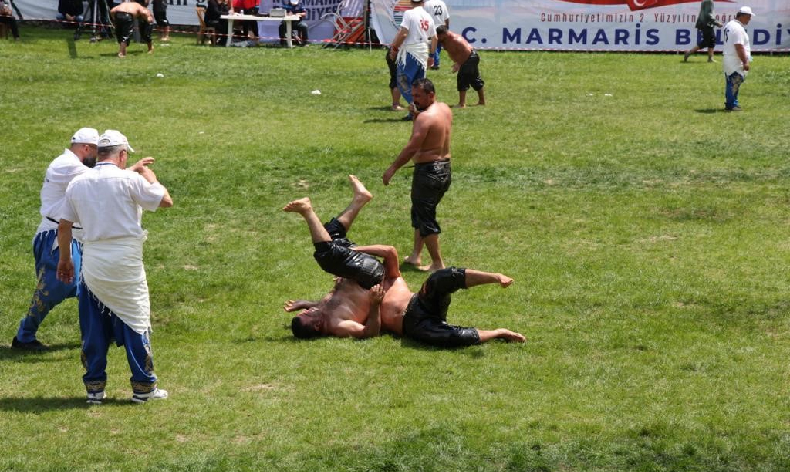 Marmaris Yağlı Güreşlerinde er meydanının ünlü isimleri Ali Gürbüz, Orhan Okulu, Mehmet Yeşil Yeşil ve Fatih Atlı başta olmak üzere 30 başpehlivan ve 300 güreşçi katılarak önce rakiplerinin belirlendiği kuraların çekimlerinin ardından yaş grupları ve kategorilerde güreş tuttu.