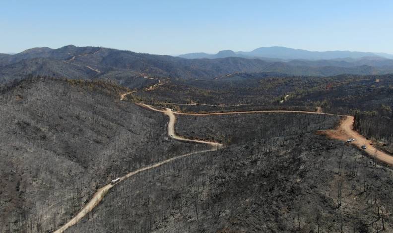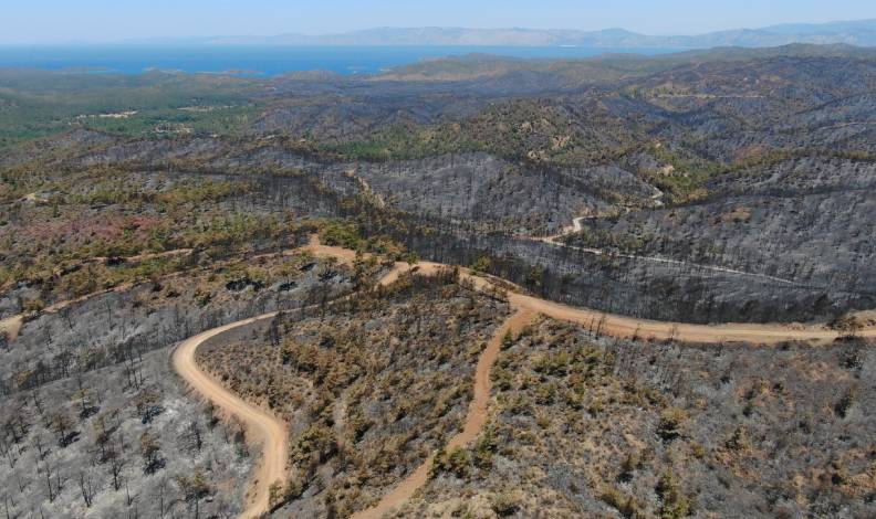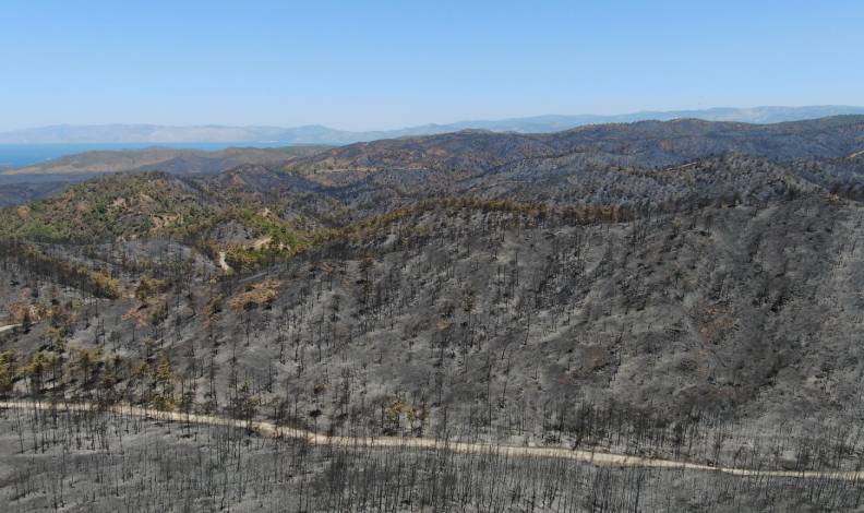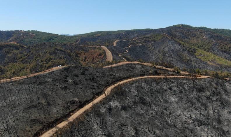 Diğer yandan, 4 bin 500 hektarlık yanan ormanlar drone ile görüntülenirken, yemyeşil ormanların yok olduğu görüldü.