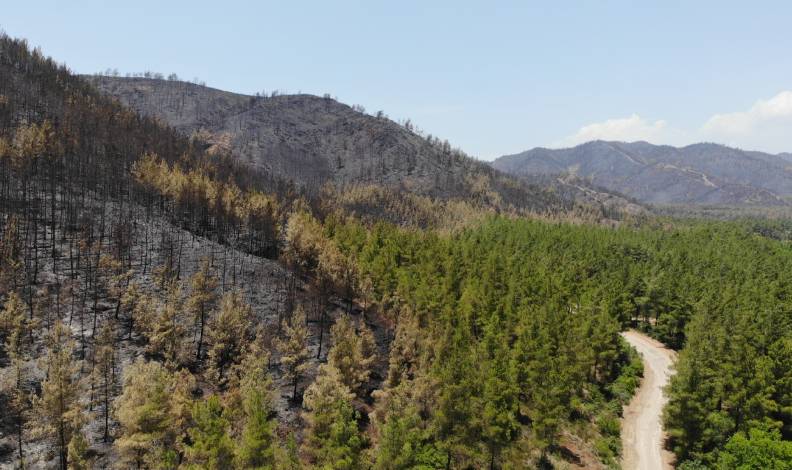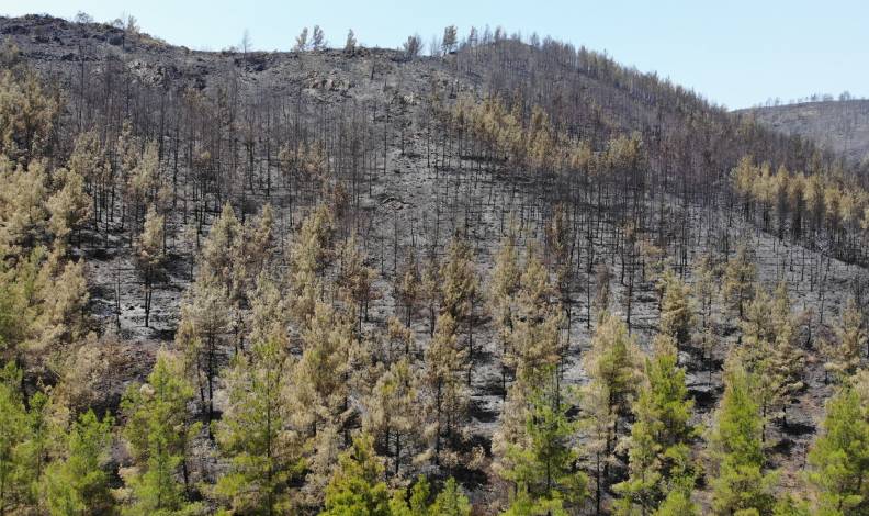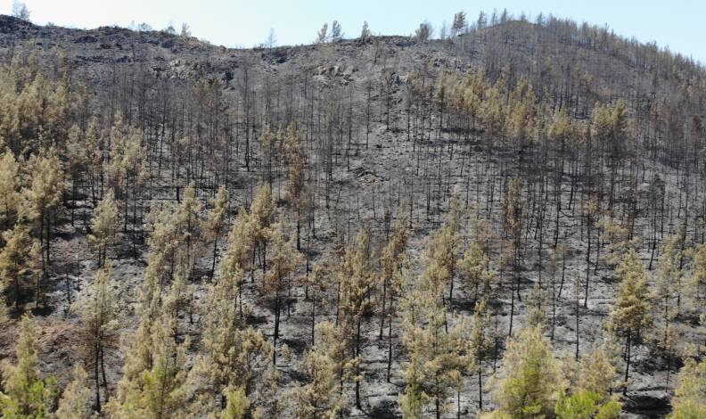 Muğla’nın Marmaris ilçesinde süren orman yangınında durum iyiye giderken, alevlerin söndürüldüğü alanlar drone ile havadan görüntülendi. Değirmenyanı mevkiinde alevlere teslim olan ağaçların kömüre dönüştüğü görülürken, yangın ise geride gri bir kül tabakası bıraktı.