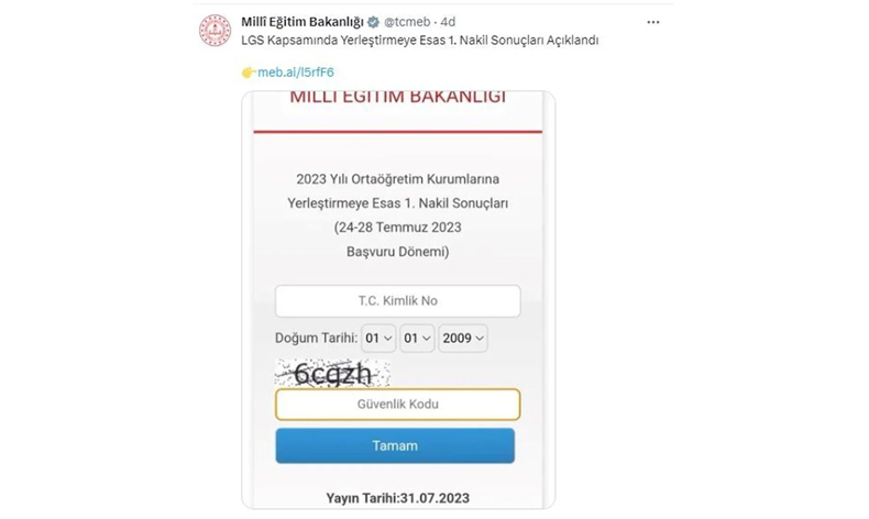 Yerleştirmeye esas 1. nakil için tercihler 24 – 28 Temmuz tarihleri arasında alınmıştı. MEB, nakil sonuç duyurusunu resmi Twitter adresinden paylaştı.