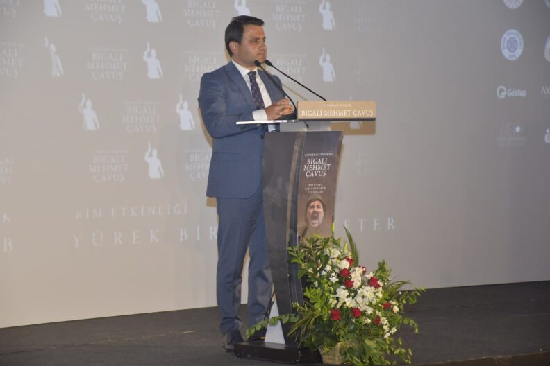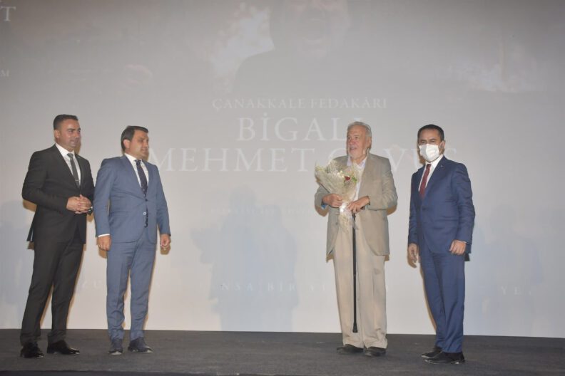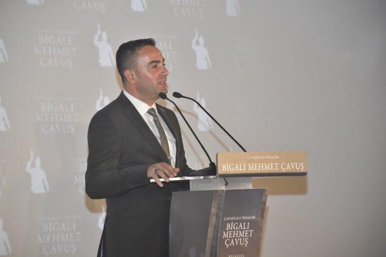 Mehmet Çavuş’un hayatını beyaz perdeye aktarmayı başardıkları için çok mutlu olduklarını söyleyen Biga Belediye Başkanı Bülent Erdoğan, “Bu gece şehitler diyarı Çanakkale’mizde çok gururlu, mutlu ve bir o kadar da duygusal bir gecedeyiz. Hayalimiz olarak gördüğümüz ve arkadaşlarımızın binbir zahmetle aylarca çalışıp ortaya çıkardığı tarihi bir projenin gerçekleştiği gecedeyiz. Çanakkale Fedakarı, Seddülbahir Kahramanı ve Mehmetçiğimizin isim babası Bigalı Mehmet Çavuşumuzun savaş yıllarındaki fedakarlığını ve hayatını anlatmaya çalıştığımız belgeselimiz gelecek kuşaklara emanetimizdir. Kahramanımızın yaşamı büyük bir yokluk, zorluk ve fedakarlık içinde geçiyor. Bu örnek hayatı gelecek nesillere anlatmanın, yurtiçinde ve yurtdışında tanınmasını sağlamanın ve her Bigalının hatırlamasının değerli bir görev olduğuna inandık. Geçmişini unutan milletler yok olmaya mahkumdur anlayışıyla bizler geçmişimizi unutmayacak ve unutturmayacağız dedik. Allah’a şükürler olsun belgeselimizi tamamladık ve kahramanlık destanının yazıldığı yerde düzenlediğimiz gala gecemizde hep beraber bir araya geldik. Gazi Mustafa Kemal Atatürk’ün gümüş saat ve tabaka ile ödüllendirdiği, Enver Paşa’nın imtiyaz madalyası taktığı kahramanımız, kıymetlimiz ‘Bir yürek bir de kürek yeter’ diyerek istihkam küreği ve taşla düşmanı püskürtecek kadar cesur; çarpışmada yaralanıp tedavisinin ardından hava değişimi için gittiği köyünde ‘Arkadaşlarım cephede savaşırken ben burada yatamam’ diyecek kadar fedakar; savaştan sonra kendisine teklif edilen maddi yardımlara ‘Ben vatanım için savaştım, para için savaşmadım’ diyecek kadar da vatansever ve adanmış bir ruhtur. Allah kendisinden razı olsun. Vatan için kan döküp can verenlerin değerini anlamaya vesile olması dileğiyle belgeselimizin hayırlı uğurlu olmasını temenni ediyorum. Emeği geçen herkese teşekkür ediyorum. Başta Gazi Mustafa Kemal Atatürk ve silah arkadaşları olmak üzere tüm şehitlerimizi minnetle anıyor, gazilerimize hayırlı ömürler diliyorum” dedi.