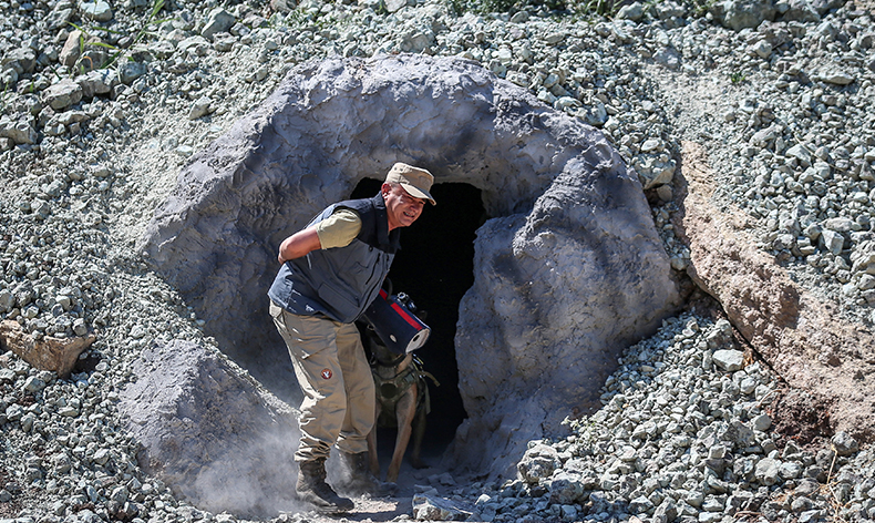 “Parka”, mağara içinde tespit ettiği tehdit unsurunu etkisiz hale getirdi. Eğitimden sorumlu personel ise köpeğin mağaraya giriş ve çıkışını UKKS cihazı sayesinde anlık görüntü akışıyla izledi.