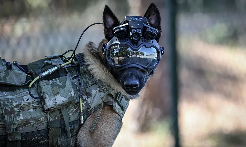 Tasarlanan özel gözlük ve kask sayesinde dar alanlarda köpeğin gözüne zarar gelmesinin önüne geçilirken, özel kulaklık sayesinde verilen komutla ise tehlike anında hayvanın, eğiticisinin yanına dönmesi sağlanıyor.