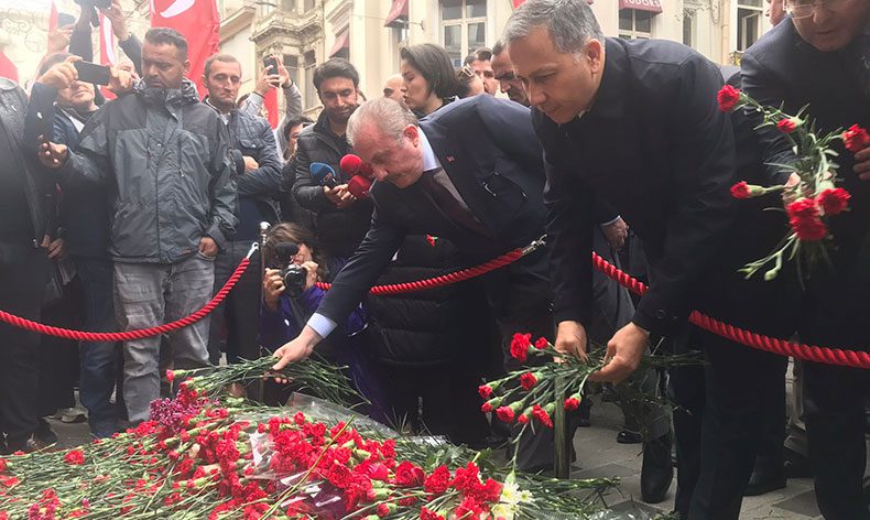 Türkiye Büyük Millet Meclisi Başkanı Mustafa Şentop, Taksim’de patlamanın olduğu noktaya çiçek bıraktı.