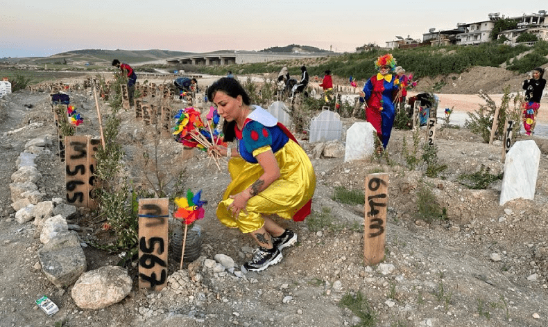 Adana’da faaliyet gösteren bir derneğin üyeleri, Hatay’da depremde hayatını kaybeden çocukların mezarına süper kahraman kostümleri giyerek rüzgar gülü bıraktı.