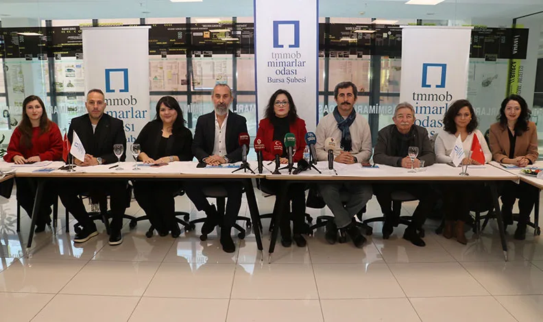 TMMOB Mimarlar Odası Bursa Şube Başkanı Şirin Rodoplu Şimşek, konuşmasının ardından gazetecilerin sorularını yanıtladı.