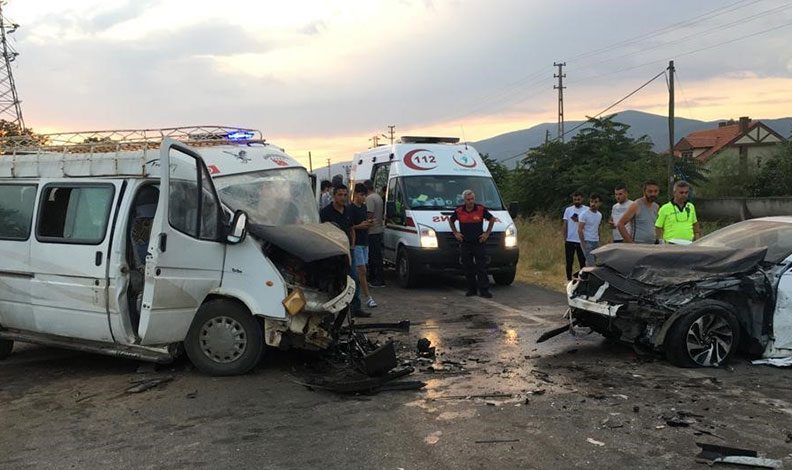 Edinilen bilgiye göre, Amasya-Çorum karayolu Kayabaşı köyü mevkiinde meydana gelen kazada, Ahmet Şimşek yönetimindeki minibüs, karşı yönden gelen Recep Sinan Aşık’ın kullandığı otomobille kafa kafaya çarpıştı. Kazada sürücülerin de aralarında bulunduğu 20 kişi yaralandı.