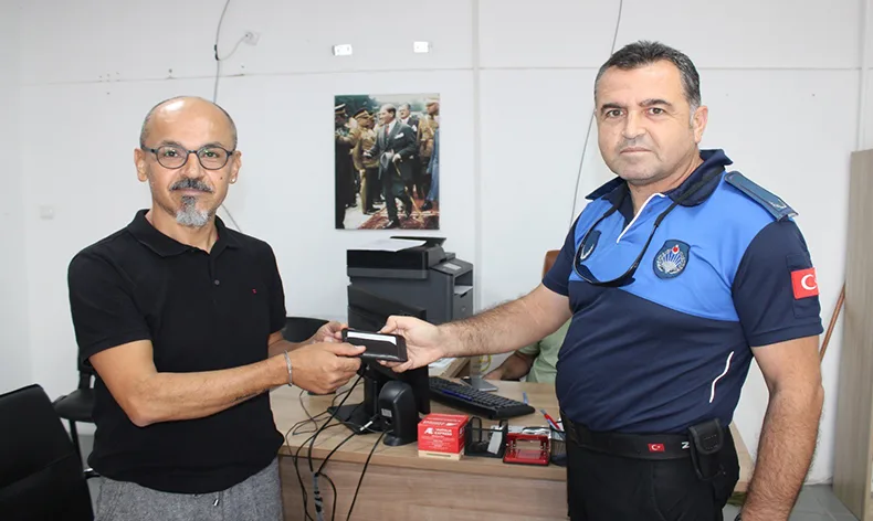 HBB Zabıta Daire Başkalığı vatandaşların huzuru, kamu düzeninin devamı için görevini aralıksız sürdürmeye devam ediyor. İskenderun ilçesinde cüzdanını toplu taşıma aracında düşürdüğünü fark eden Serdar Gül isimli vatandaş Zabıta Daire Başkalığına Bağlı Trafik Şube ekiplerinden yardım istedi. Vatandaşın yardım talebi üzerine harekete geçen ekipler, toplu taşıma aracı sürücüsüne ulaştı. Cüzdanın bulunarak kendisine teslim edildiğini kaydeden sürücü, vatandaşın kaybolan cüzdanını zabıta ekiplerine teslim etti. Teslim alınan cüzdan ekipler tarafından sahibine ulaştırıldı.