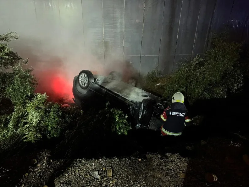 MERSİN'DE SERAYA ÇARPIP TERS DÖNEN ELEKTRİKLİ ARAÇTAKİ BATARYA YANGINI İTFAİYE EKİPLERİNCE SÖNDÜRÜLÜRKEN, SÜRÜCÜ HASTANEYE KALDIRILDI. (SERKAN ÖZCAN/MERSİN-İHA) Mersin'de seraya çarpıp ters dönen elektrikli araçtaki batarya yangını itfaiye ekiplerince söndürülürken, sürücü hastaneye kaldırıldı.