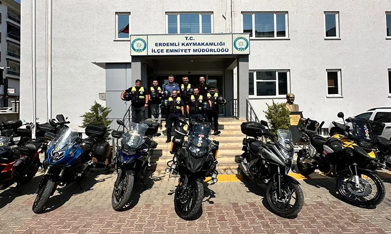 Yeni kurulan Erdemli Motosiklet Kulübü’nün ilk faaliyeti kask farkındalığı oluşturmak oldu. Motosiklet tutkunları bir araya geldikleri ilçemin önde gelenlerden ‘kask’ ile ilgili sosyal mesaj aldı. Bu kapsamda Erdemli Kaymakamı Aydın Tetikoğlu, kaymakamlık binası önünde motosiklete bindi, elinde kaskla sosyal mesaj verdi.