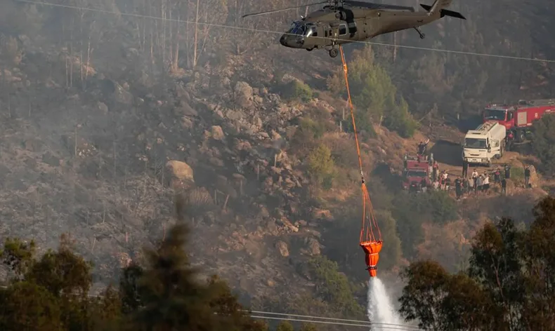 MSB’nin sosyal medya hesabından yapılan paylaşımda; İzmir, Aydın ve Bolu olmak üzere 3 ilde devam eden orman yangınlarını söndürme çalışmalarında destek olmaya devam edildiği kaydedildi. MSB’nin paylaşımında, Türk Silahlı Kuvvetlerinin; 6 helikopter ile İzmir’in Menderes ilçesinde, 2 helikopter ile İzmir’in Karşıyaka ilçesinin Yamanlar mevkisinde, 2 helikopter ile İzmir’in Urla ilçesinde, 3 helikopter ile Aydın’ın Bozdağ ilçesinde, 2 helikopter ile Bolu’nun Göynük ilçesinde toplam 15 helikopterle havadan müdahaleye devam edildiği bilgisi verildi.