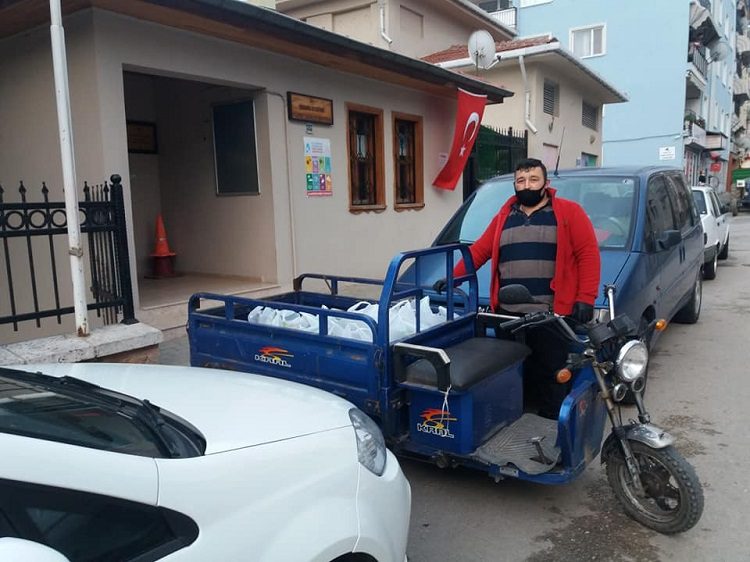 Muhtar Vezir Sağlam, korona salgını sebebiyle evlerinden çıkamayan ve ihtiyaç sahiplerine mahallesindeki esnafında katkılarıyla gıda malzemelerini elleriyle teslim ediyor. Sağlam, “Korona virüs salgını tedbirleri kapsamında kronik rahatsızlığı bulunan yaşlılarımıza muhtarlık olarak elimizden geldiğince hizmet vermeye çalışıyoruz. Mahallemiz esnaflarının da katkılarıyla, Umut Manavında hazırladığımız 10 adet sebze, meyve poşetlerini ihtiyaç olan ailelere dağıttık. Mahallemiz sakinlerinden İ. Ç.’nin muhtarlığa gönderdiği sofra zeytinlerini poşetlerle birlikte kendilerine ikram ettik. Şahsım ve mahallem adına Umut Manavı Recep Demirci ve çalışanlarına, zeytinleri gönderen İ. Ç. kardeşime çok teşekkür ederim. Hepsinden Allah razı olsun” diyerek duygularını dile getirdi.