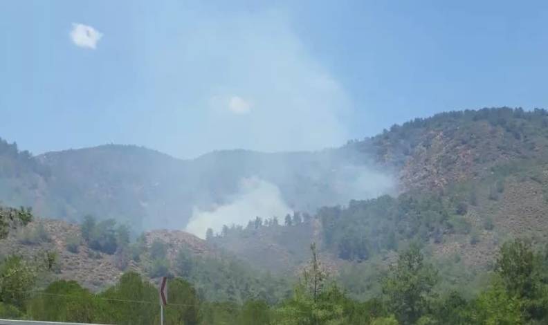 İhbar üzerine bölgeye hava araçları yönlendirildi. Ekiplerin yangını söndürme çalışmaları devam ediyor.