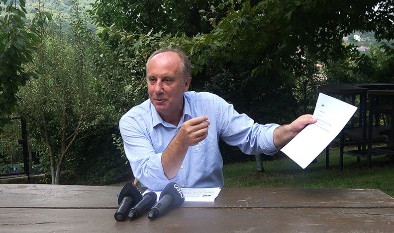 İnce, Memleket Partisi’nde olduğu için muhalefet televizyonlarında programlara katılamayan eski üyelerinin istifa sonra bir programa katıldığını dile getirerek, “Memleket Partisi’ndeyken tweet atan bir arkadaşımız var. ‘Halk TV, KRT, Tele1 tüm muhalefet partilerini Deva, Gelecek partileri dahil ekrana çıkartıyor Memleket Partisi’ni davet etmiyorsa bunu normal mi değerlendireceğiz? Bundan sonra hiç kimse hiçbir kanal için yandaş demesin’ bu arkadaşımız Memleket Partisi’ndeyken bu tweet’i atmış. Memleket Partisi’nden istifa etmiş, ‘Saat 21.00’de Tele1’deyim’ diye tweet atmış. Sevsinler sizin demokratlığınızı” diye konuştu.