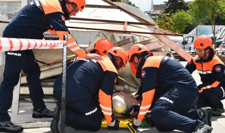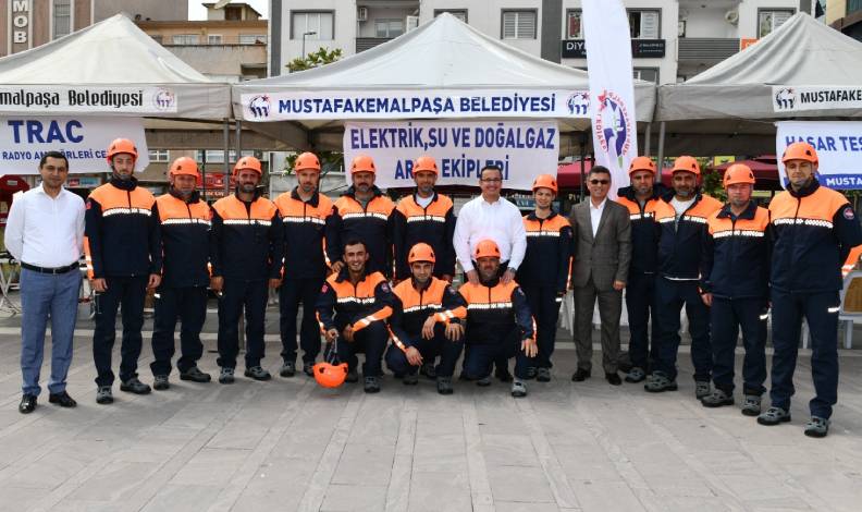 Mustafakemalpaşa Arama Kurtarma Ekibi (MPAK), önce enkaz altında kalan afetzedeyi enkaz altından çıkararak sağlık ekiplere teslim etti, ardından 30 kişilik Yerel Destek Ekipleri muhtemel durumlarda afet alanında çadır kurulumu hakkında detaylı bilgiler verdi. Kriz Masası ve Ana ve Destek Çözüm ortakları ile irtibat sağlanması için Amatör Telsizcileri Cemiyeti (TRAC), telsiz kurulumu ve irtibatın nasıl kurulduğunu anlattı. Adnan Menderes Meydanı nefes kesen bir tatbikata sahne olurken 7’den 70’e tüm halk tatbikata yoğun ilgi gösterdi.