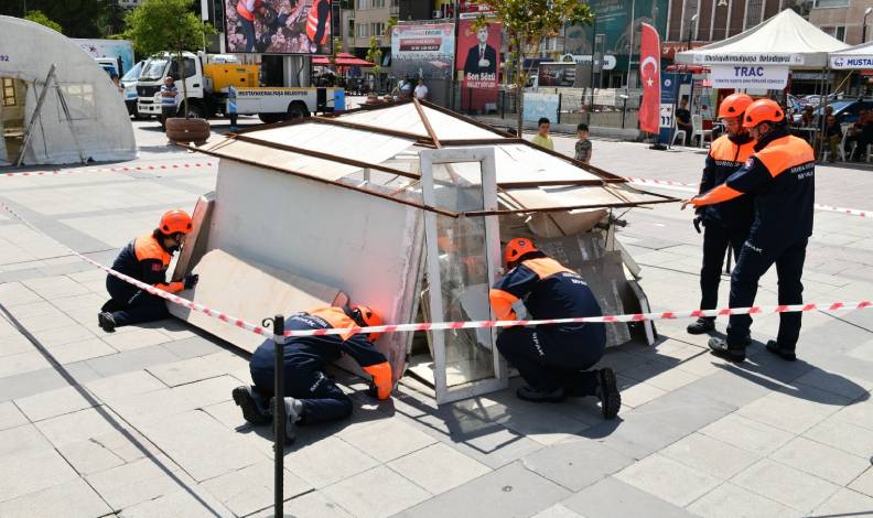 Mustafakemalpaşa Arama Kurtarma Ekibi (MPAK), önce enkaz altında kalan afetzedeyi enkaz altından çıkararak sağlık ekiplere teslim etti, ardından 30 kişilik Yerel Destek Ekipleri muhtemel durumlarda afet alanında çadır kurulumu hakkında detaylı bilgiler verdi. Kriz Masası ve Ana ve Destek Çözüm ortakları ile irtibat sağlanması için Amatör Telsizcileri Cemiyeti (TRAC), telsiz kurulumu ve irtibatın nasıl kurulduğunu anlattı. Adnan Menderes Meydanı nefes kesen bir tatbikata sahne olurken 7’den 70’e tüm halk tatbikata yoğun ilgi gösterdi.