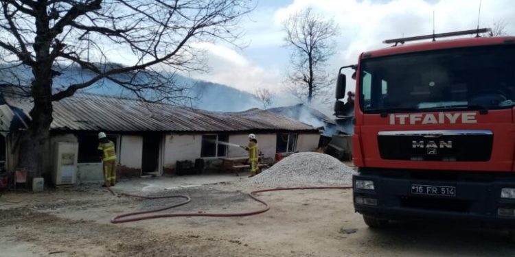 Mustafakemalpaşa’da mermer ocağı yemekhanesinde çıkan yangın korkuttu