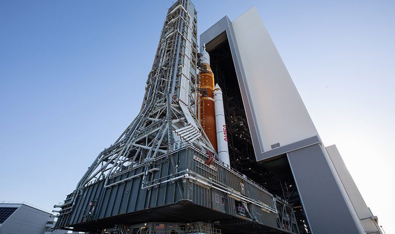 NASA’nın yeni Ay roketi 29 Ağustos’ta planlanan fırlatma öncesinde ABD’nin Florida eyaletindeki Kennedy Uzay Merkezi’nde bulunan rampaya yerleştirildi. Uzay Fırlatma Sistemi (SLS) roketi ve Orion uzay aracının gerçekleştireceği bir uçuş denemesi olan Artemis I görevi çerçevesinde fırlatılacak roketin yaklaşık 98 metre uzunluğunda ve 3.99 tonluk itiş gücünde olduğu açıklandı. SLS roketi tarafından Ay yörüngesine gönderilecek Orion insansız uzay aracının 42 gün görevde kalarak benzer bir uçuşun gelecekteki insanlı uçuşları nasıl etkileyebileceğine dair veri toplayacağı bildirildi.