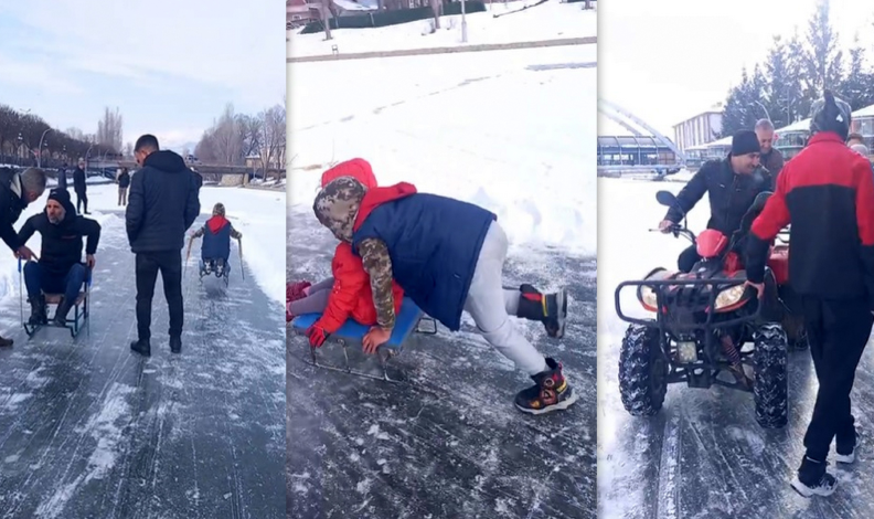 Soğuk hava nedeniyle Arpalı beldesinden geçen Çoruh Nehri’nin yüzeyi yaklaşık 25 santimetre kalınlığında buzla kaplandı. Belde sakinleri, yüzeyi buzla kaplanan nehirde kızaklarıyla kaydı, bazıları da arkasına kızak bağlanan ATV ile nehir üzerinde tur attı.