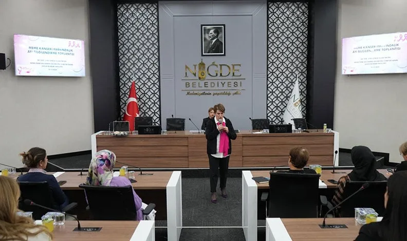 Niğde Ömer Halisdemir Üniversitesi Kadın ve Aile Sosyal Politikalar Uygulama ve Araştırma Merkezi ve Zübeyde Hanım Sağlık Bilimleri Fakültesi Ebelik Bölümü Dr. Öğretim Üyesi Gökçe Aslan Tekten tarafından, Belediye Meclis Salonu’ndaki eğitim toplantısında meme kanserinin nedenleri, belirtileri, tedavi yöntemleri ve erken teşhisin önemine ilişkin kapsamlı bir sunum yapıldı. Dr. Öğretim Üyesi Gökçe Aslan Tekten; içinde bulunduğumuz ayın ‘Meme Kanseri Farkındalık Ayı’ olduğunu belirterek, meme kanseri hastalığının kadınlarda en sık görülen kanser hastalığı olduğunu vurguladı. Buna rağmen meme kanserinin teşhis ve tedavisinin diğer pek çok kanser türlerine göre daha kolay yapılıyor olduğunu kaydeden Dr. Öğretim Üyesi Gökçe Aslan Tekten, tedavide erken tanının önemine vurgu yaptı. Meme kanserinin teşhisinde düzenli kontroller ve kendi kendine meme muayenesinin önemli olduğuna değinen Gökçe Aslan Tekten, eğitim toplantısında katılımcıların sorularını da yanıtladı.