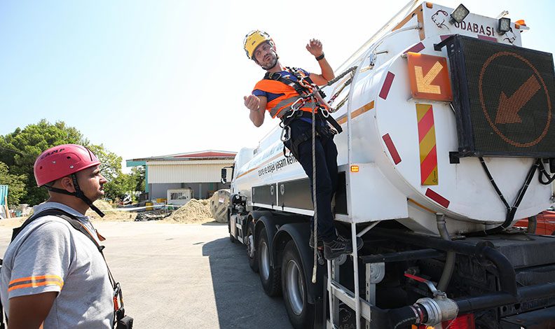 İşçi sağlığı ve iş güvenliği çerçevesinde gerçekleştirilen hem teorik hem de uygulamalı yüksekte çalışma eğitimi, sahada çalışan belediye personeline veriliyor. Çalışma koşulları gereği yerden en az 1,5 metre yüksekliğe çıkan belediye personeline verilen eğitimde, yaşanabilecek tüm olumsuzluklar ve önlem yolları anlatılıyor.