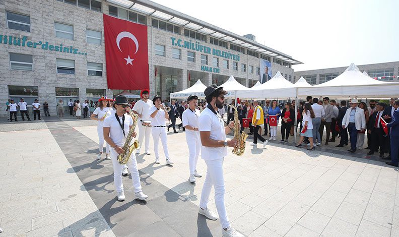 Konuşmaların ardından alanda bir gösteri yapan Nilüfer Bando, törene katılanlara Zafer Bayramı coşkusu yaşattı.